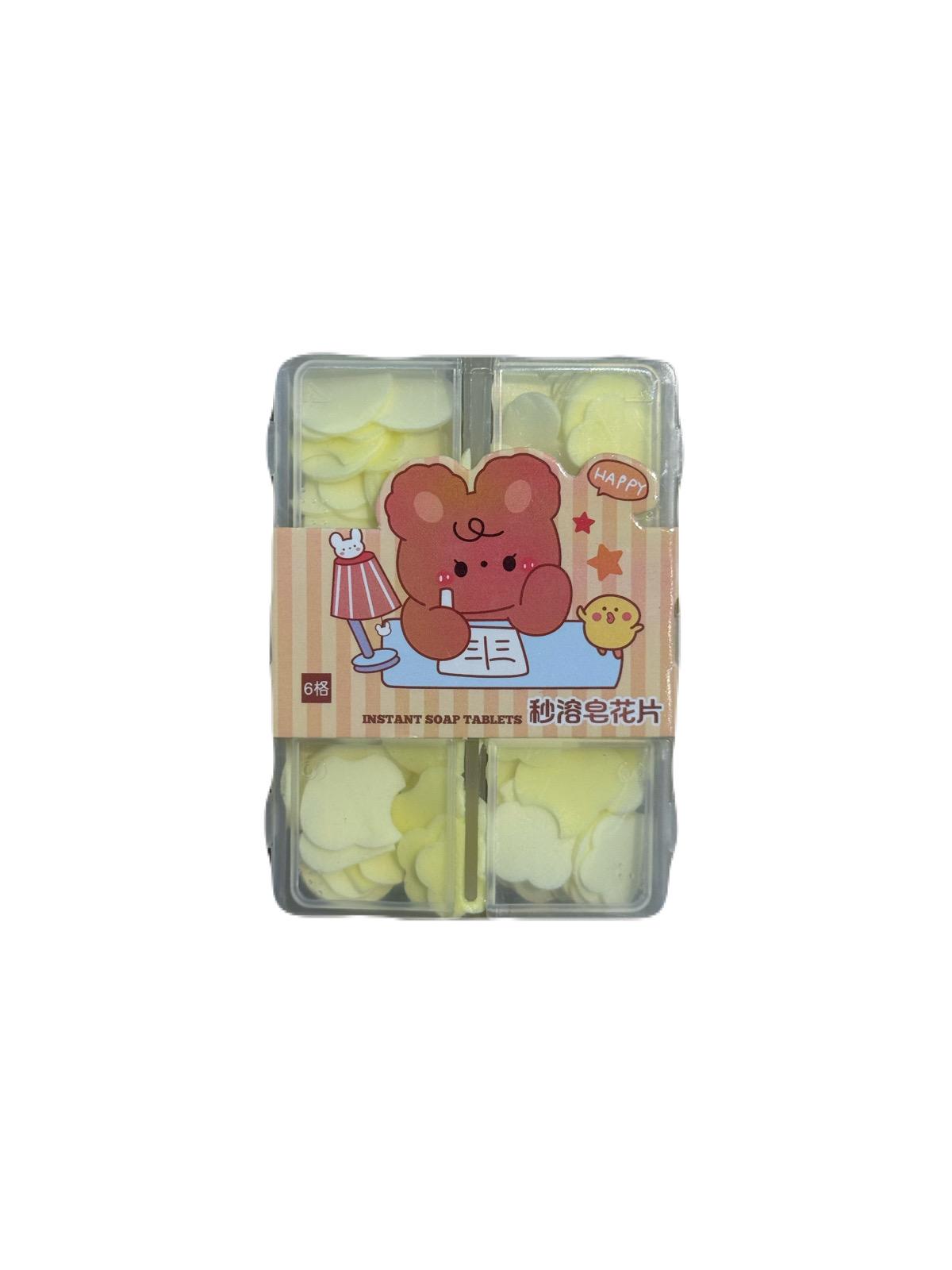 أقراص صابون فورية عملية ولطيفة بتصميم كرتوني جذاب، مثالية للاستخدام اليومي أثناء السفر، المدرسة، العمل أو التنقل. تذوب الأقراص بسرعة عند ملامستها للماء لتمنحك رغوة ناعمة تنظف اليدين بفعالية وتترك رائحة منعشة. تأتي بألوان وروائح متنوعة داخل علبة أنيقة وسهلة الحمل، ما يجعلها خيارًا مثاليًا للأطفال والكبار على حد سواء.