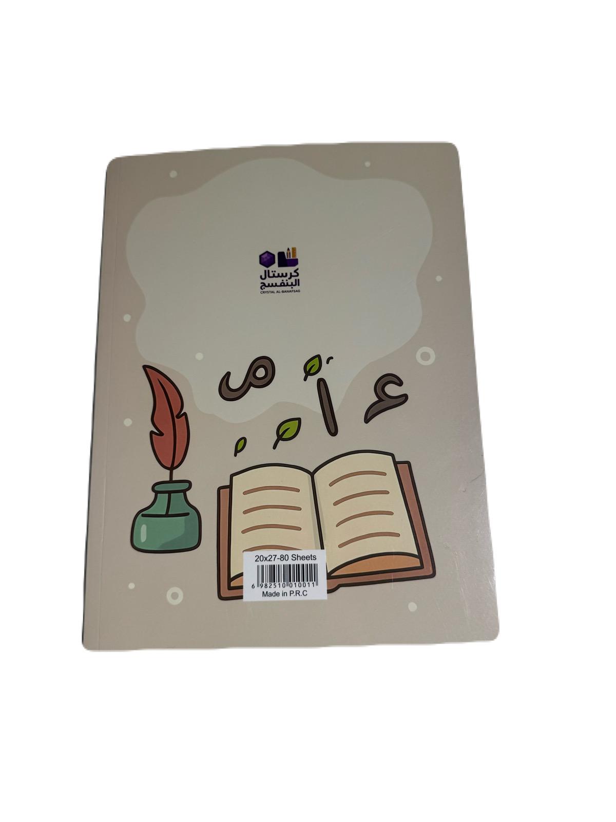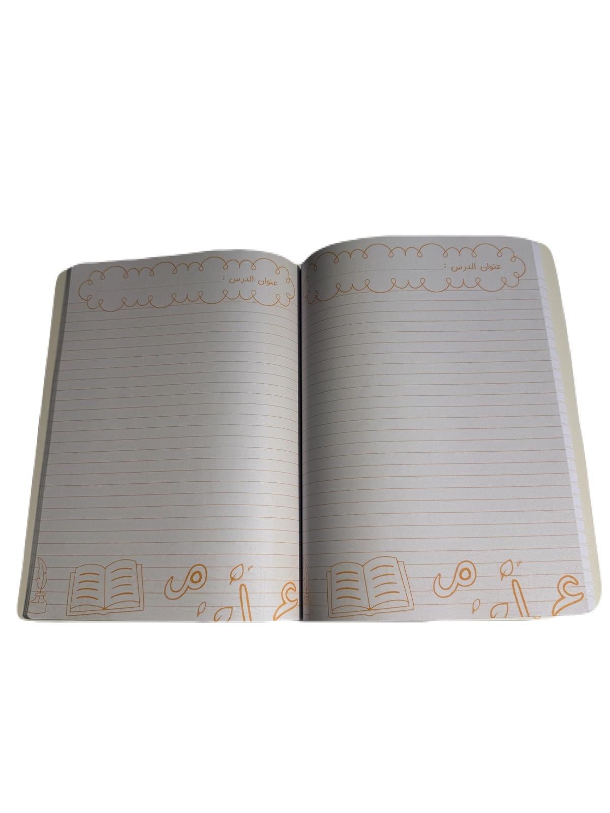 •دفتر مدرسي أنيق يضم 80 ورقة مسطَّرة مخصَّصة لتعلُّم وكتابة اللغة العربية بترتيب وتنظيم جذاب للطلاب.