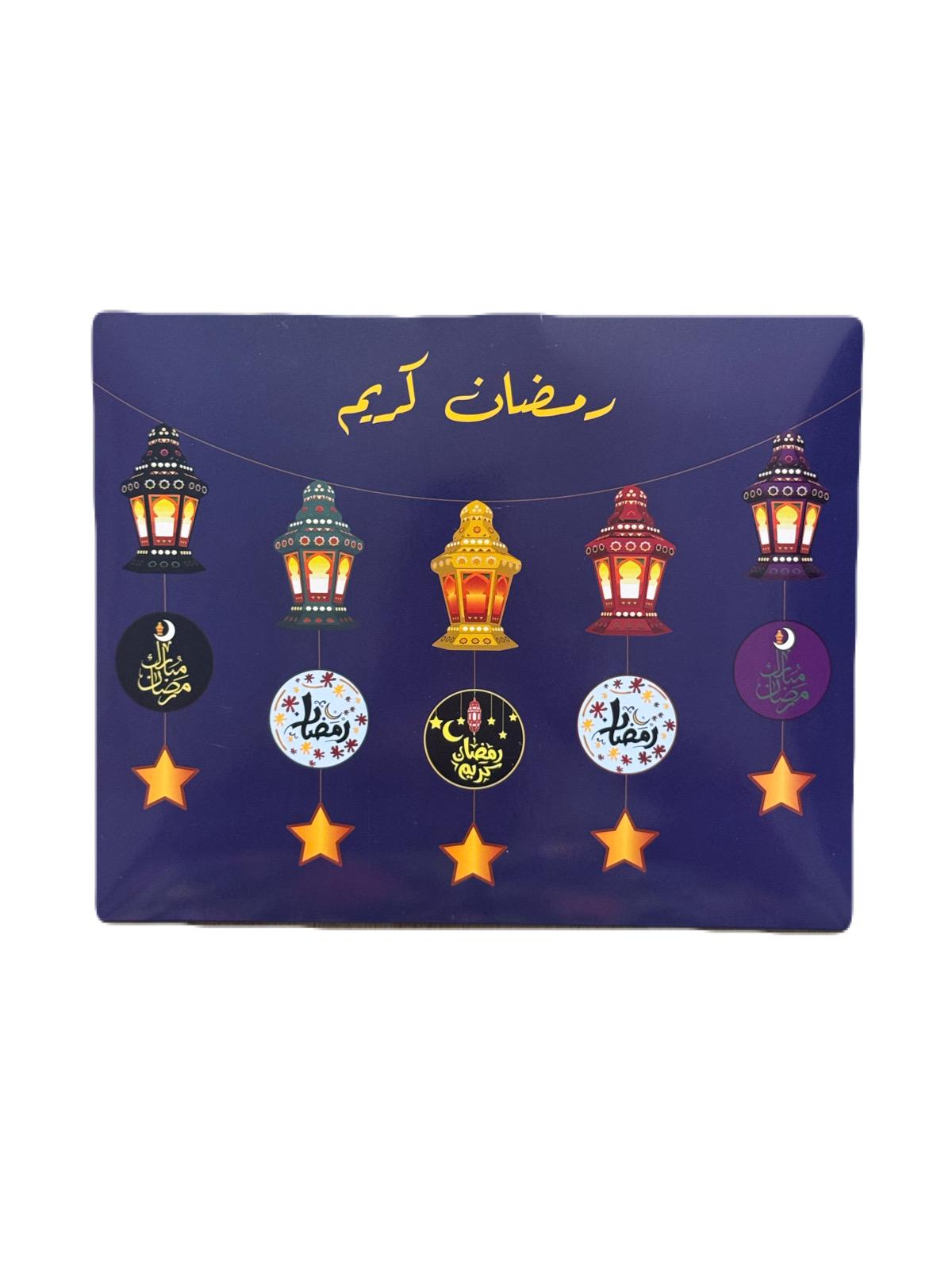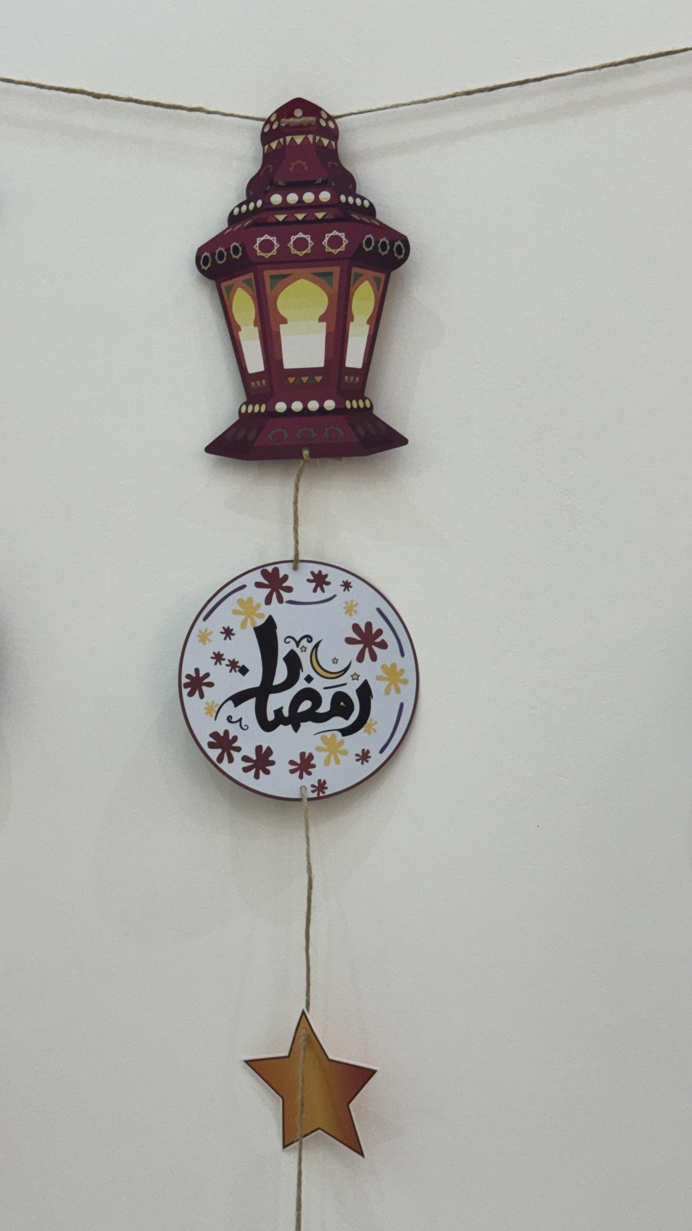 تتكون من حبل تعليق مزين بفوانيس رمضانية وأشكال دائرية مكتوب عليها عبارات رمضانية مع نجوم متدلية.
