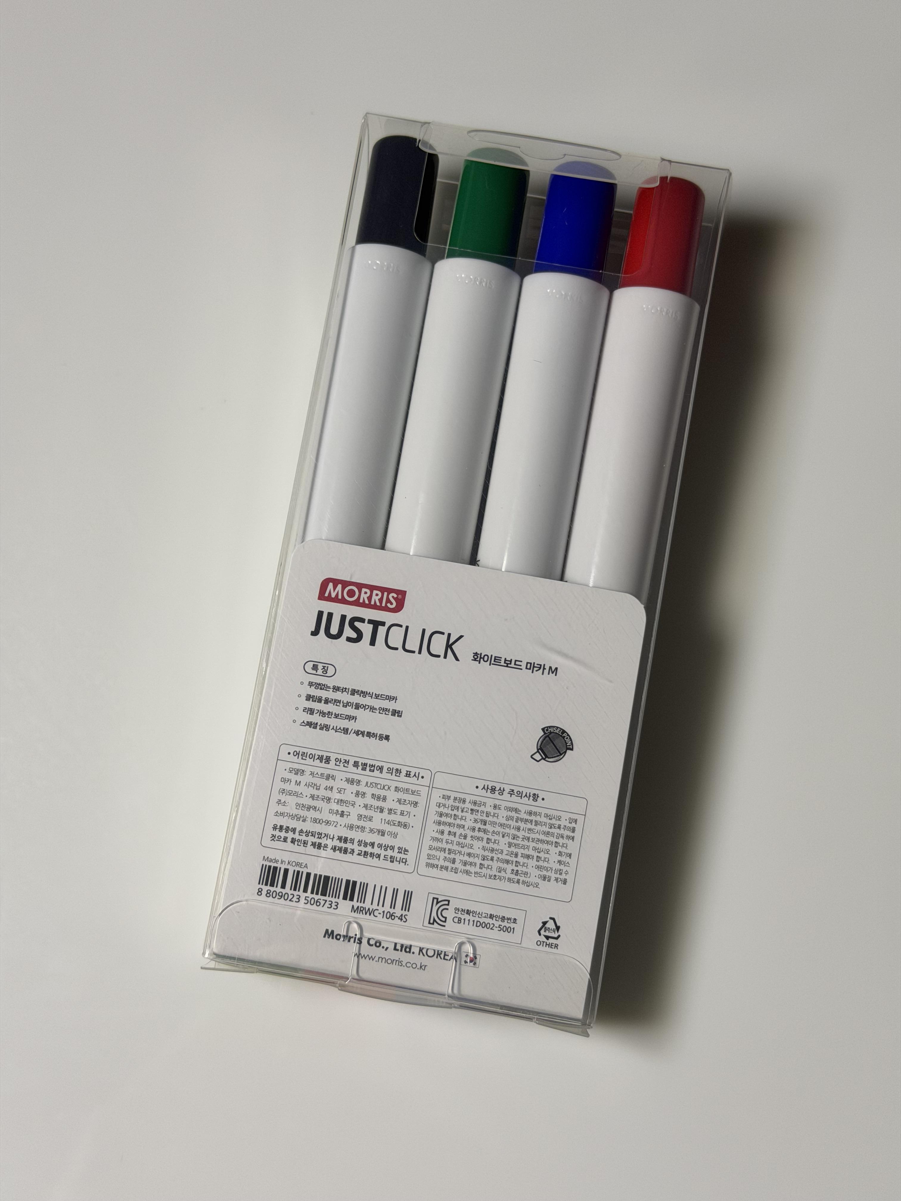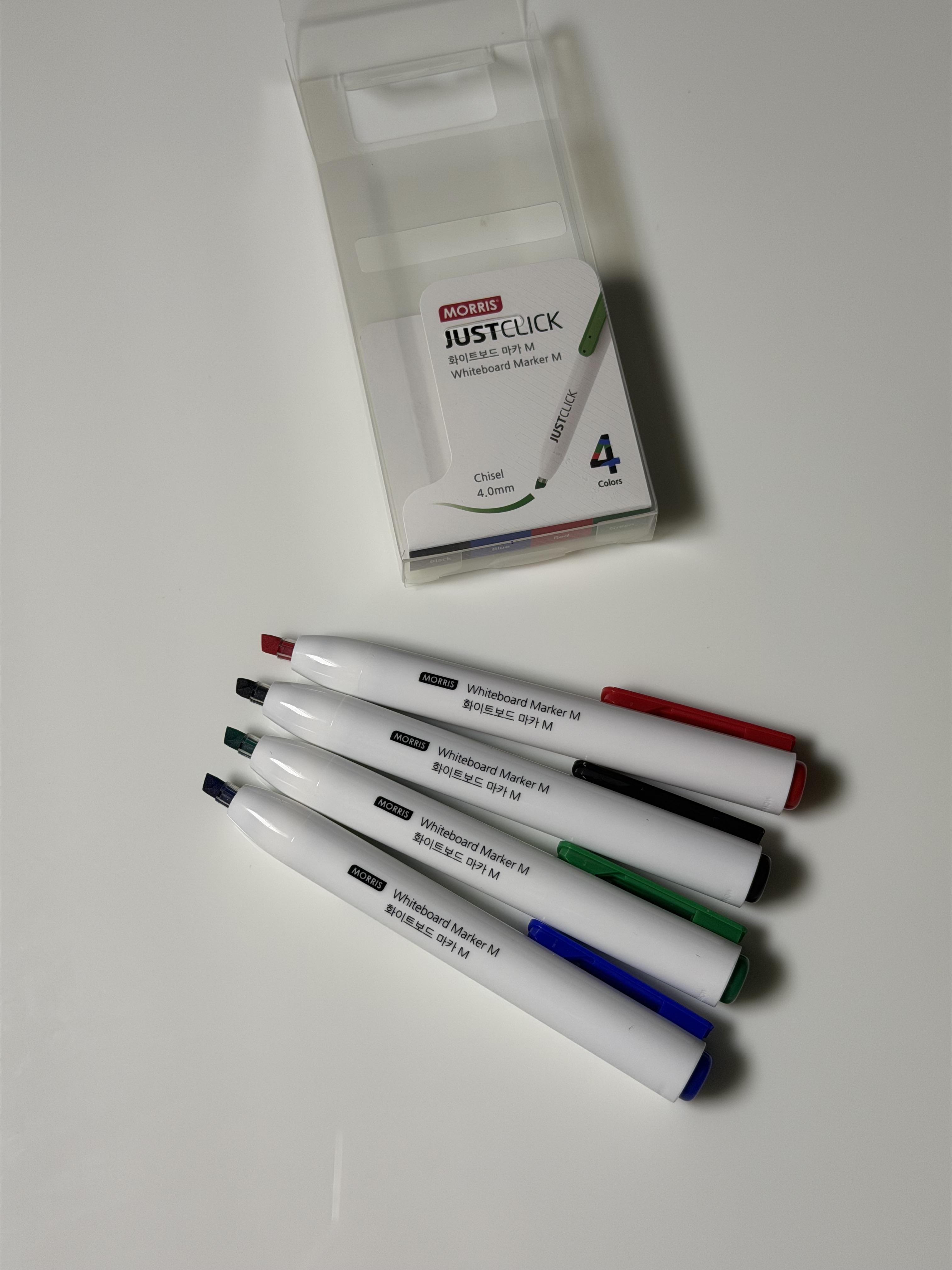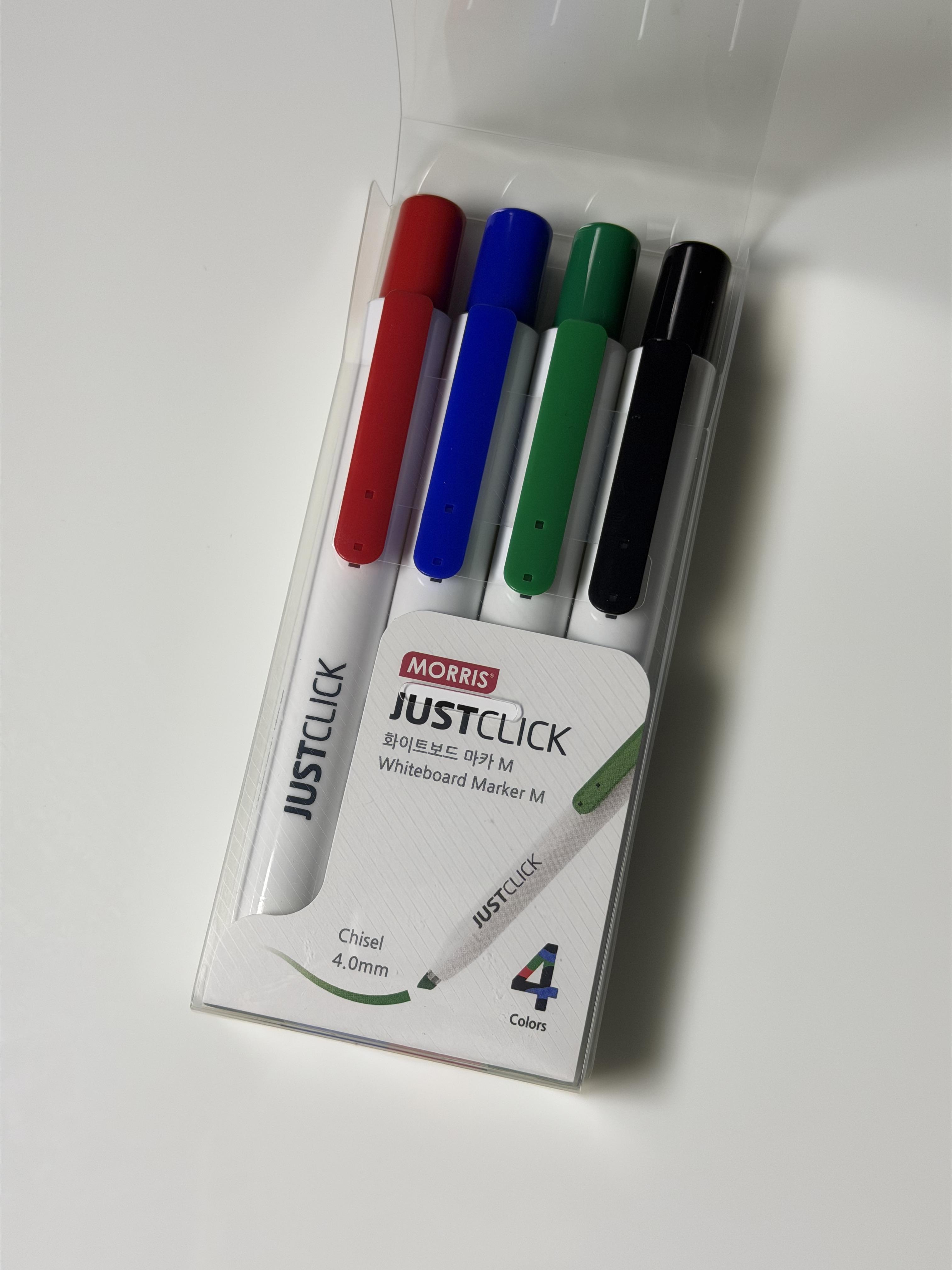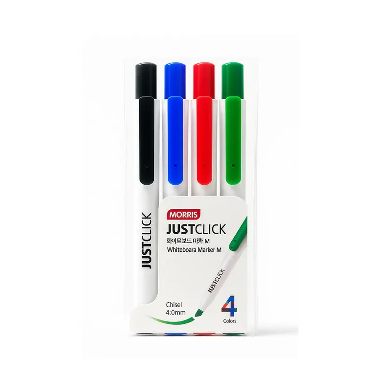 أقلام MORRIS JUSTCLICK هي الحل العملي والذكي للكتابة على السبورات البيضاء، بتصميم عصري ونظام كبس مبتكر يغنيك تمامًا عن الأغطية التقليدية. مثالية للاستخدام في المدارس، المكاتب، قاعات التدريب، والاجتماعات الاحترافية.