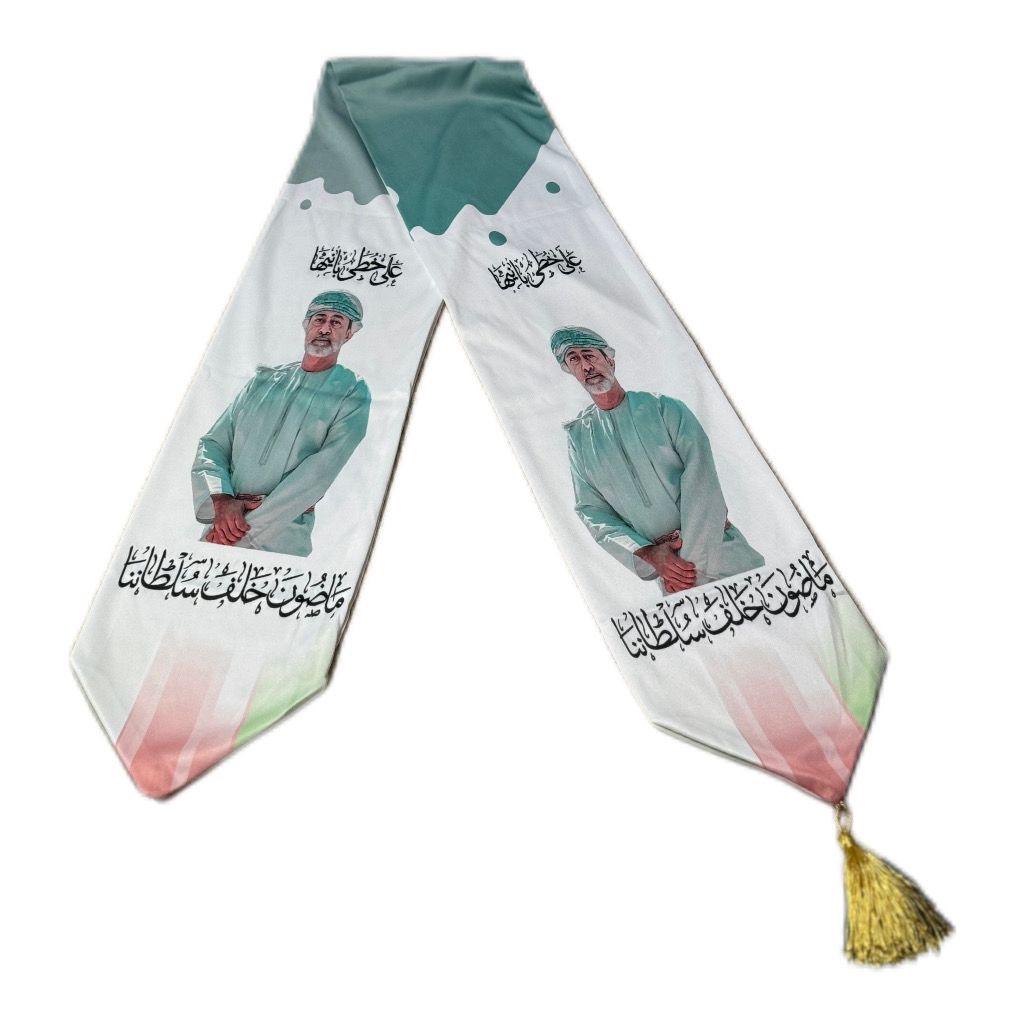 وشاح بتدرجات الأبيض والرمادي عبارات تقدير للقيادة.
