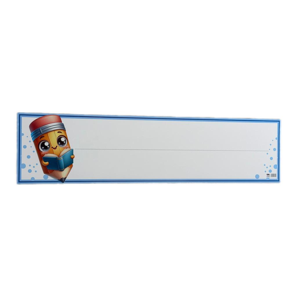سبورة تعليمية بتصميم مميز وجذاب للأطفال، مزينة برسمة قلم لطيف يحفّز على التعلم والقراءة بطريقة ممتعة .