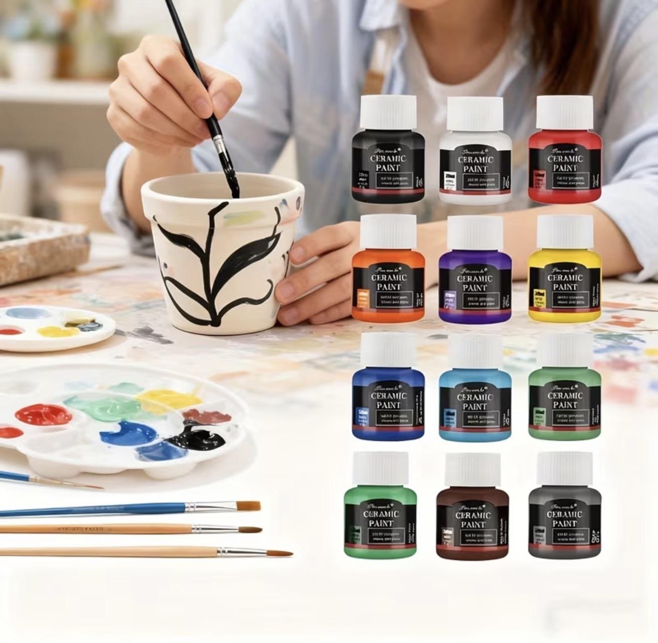 طقم ألوان سيراميك احترافية – 12 لون مع فرشاة/ ceramic paint 🎨