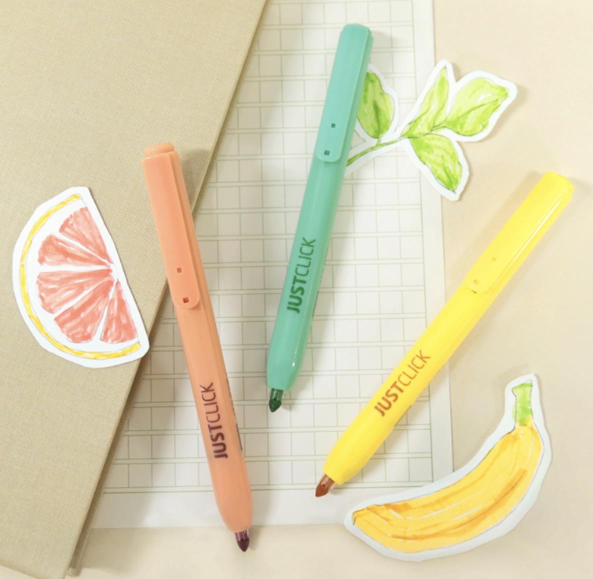 أقلام تحديد باستيل كبس (Just Click) – 3 ألوان ،جست كلك/هايلايت وتحديد